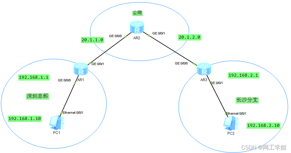 当前已完成了深圳总部出口路由器和长沙分支出口路由器的连通性,