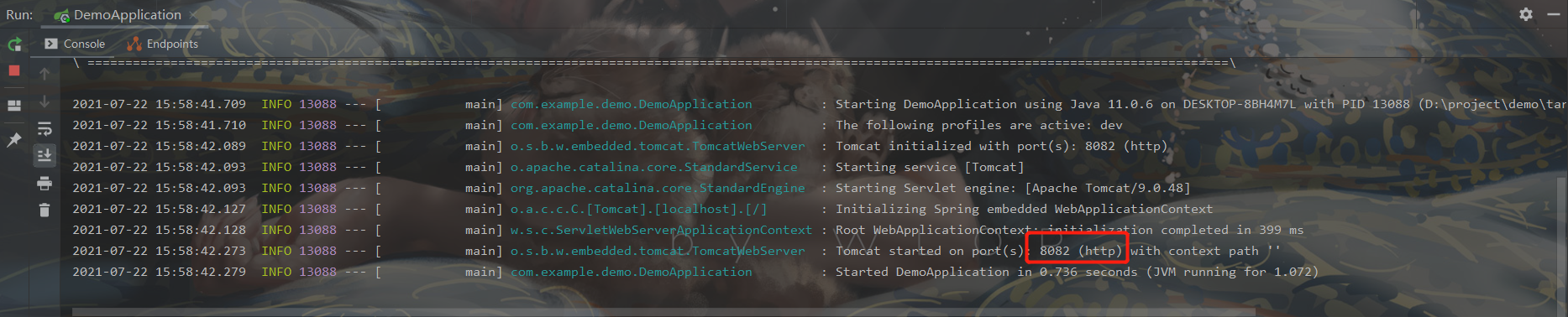 ?此时端口号被改为了在application-dev.properties文件中定义的端口号