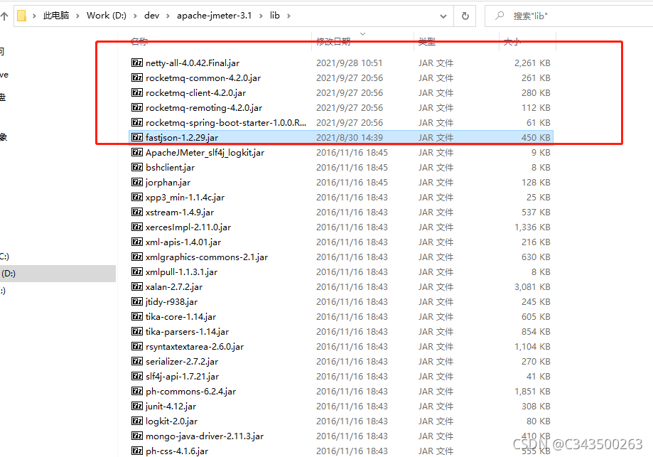 关于这些jar哪儿来, 在开发环境本地仓库copy。 或者去外网仓库下载,主要事rocketmq需要的第三方jar