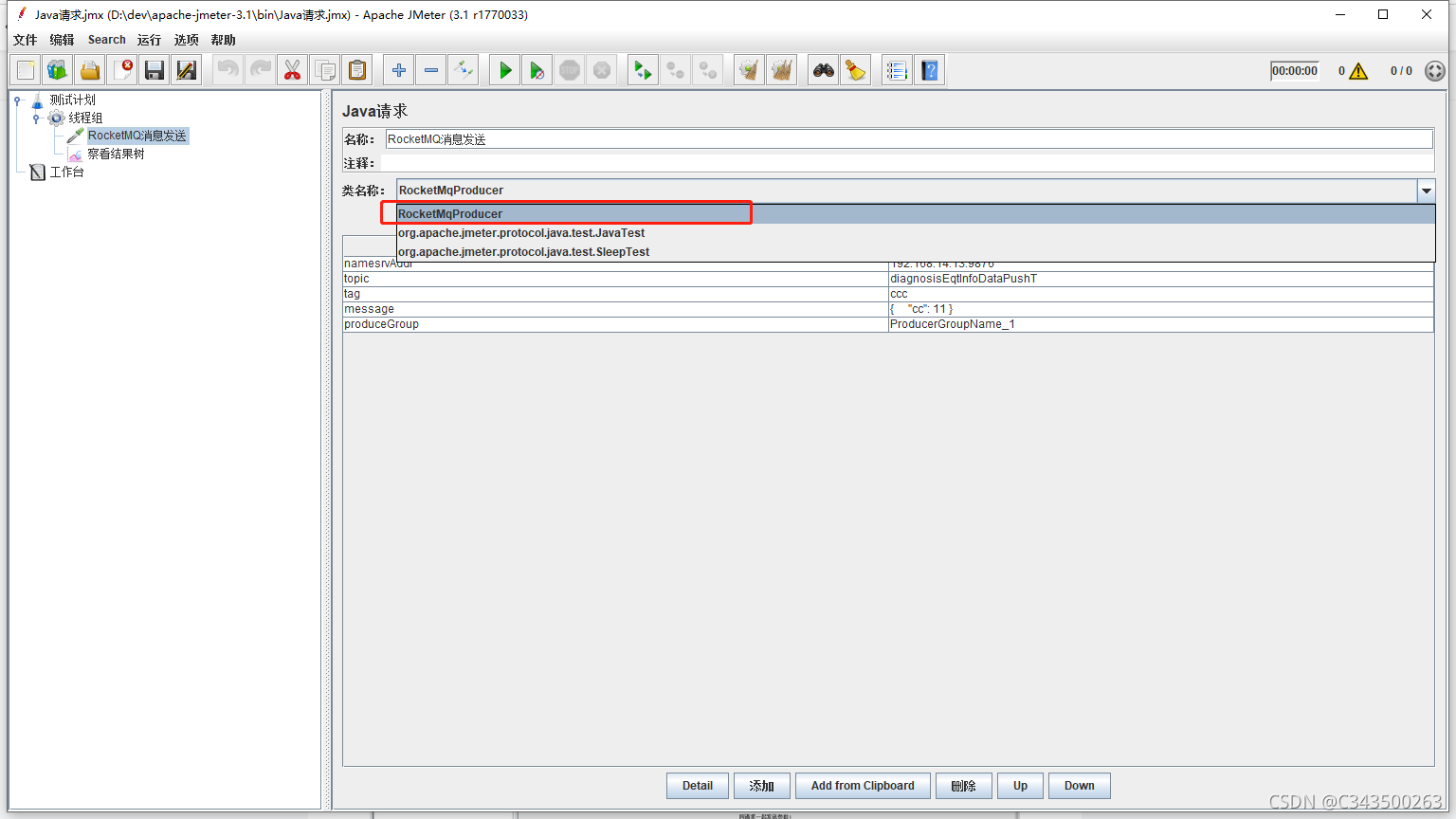 java手写一个rocketmq程序,注意这里需要实现jmeter的JavaSamplerClient