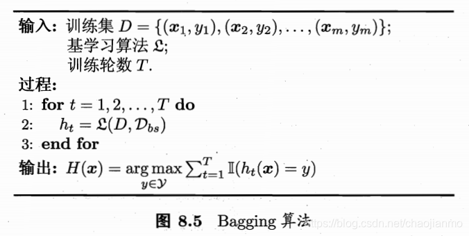 这样,就可以采样出T个包含m个训练样本的采样集,然后基于每个采样集训练出一个基学习器,再将这些基学习器进行结合。这就是Bagging的基本流程。