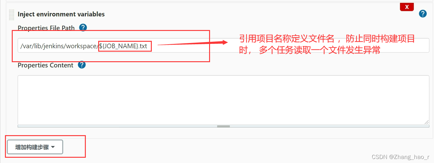 4.自定义环境变量,下载environment ject(envinject)插件,可自定义环境变量(目的是在自定义内容里面引用自定义的环境变量,以达到输出指定内容的目的),安装插件后会多个选项,读取配置文件的内容(等于自己定义的环境变量) ,在shell脚本中,将获取的信息写到文件里。