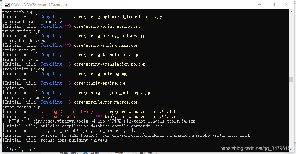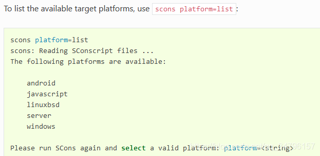 切换到工作目录 cd /d E:\Work\godot 执行命令 scons platform=list
