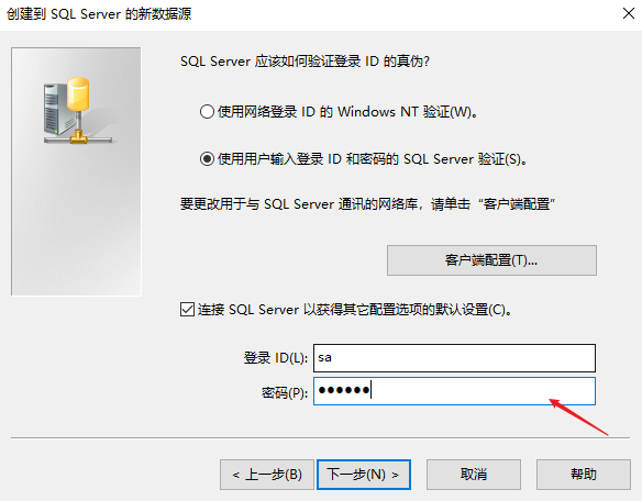 3.这个密码一定要和登录sql server 的一致,不然会出错误