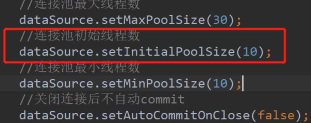 4.5 控制台输出连接池的警告信息时(虽然不影响),可以修改连接池初始线程数;