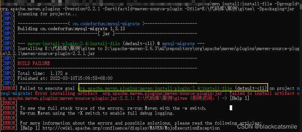 例证如下(如下是 -Dfile 参数不对的例子,主要是表达应该是通过maven插件下载的观点 )