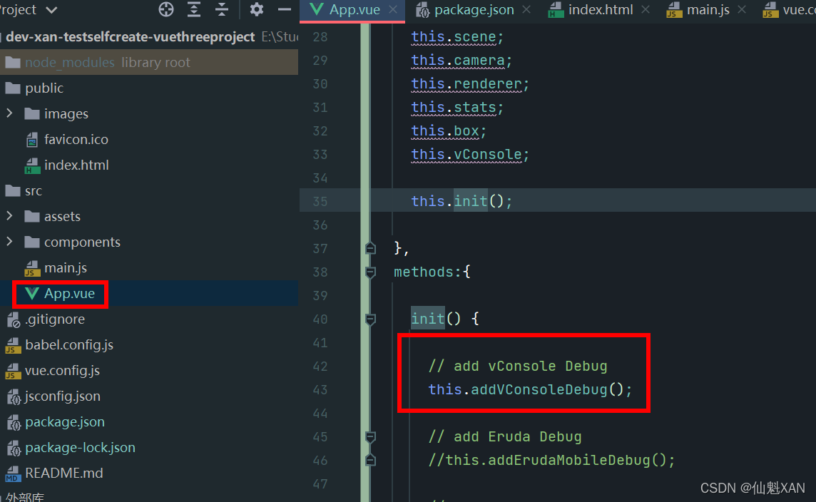 3)在 App.vue 中添加使用 eruda 代码