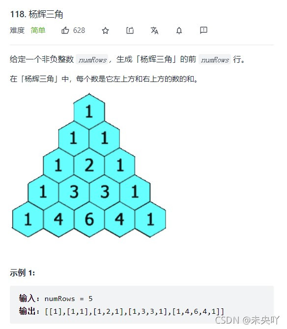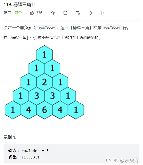 如果可以理解杨辉三角Ⅰ,这道题也并没有难点了。理解以下这个即可以了