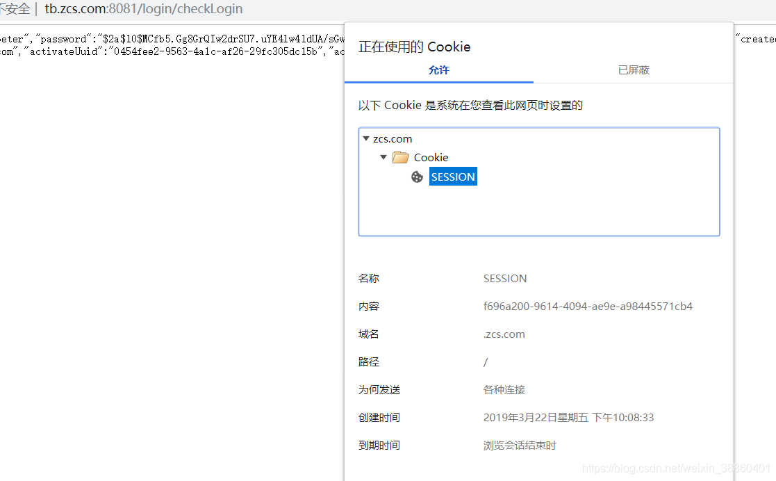 可以看到两个域名下都有cookie,同父域名下cookie的跨域问题就解决了(没有解决跨域问题的话就是你在jd.zcs.com这个域名下登录,跳转到tb.zcs.com这个域名的页面的时候会拿不到用户的cookie,从而拿不到用户的信息)。