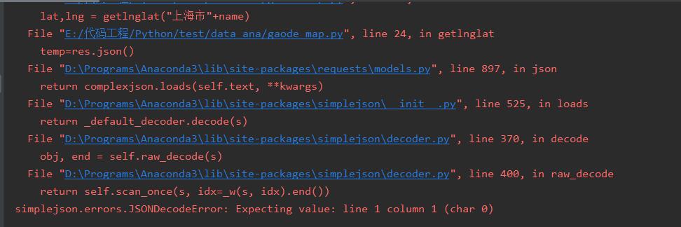 今天在爬取百度地图数据时,一开始是可以爬到数据的,但是没有爬完就出现了如下图的报错。
