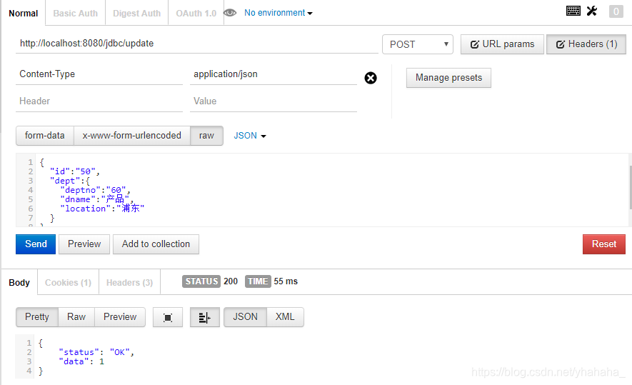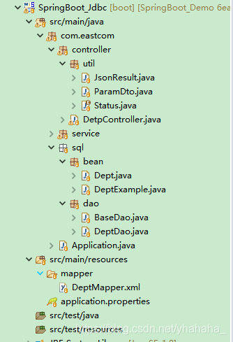 最后修改DetpController,service这里就不要了。原来jdbcTemplate的代码注释了,对比一下,其实controller里改的不多,就四行代码。