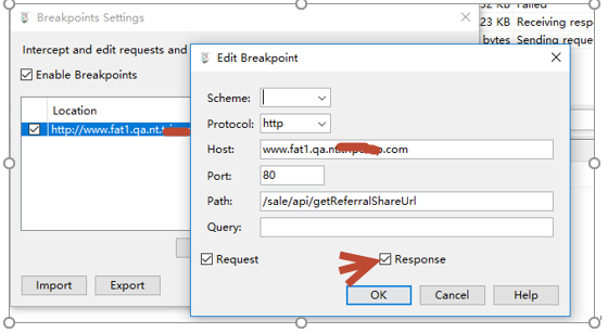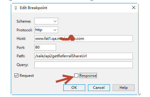 4.因为修改的是请求的Request,所以在断点设置下去掉Response选项