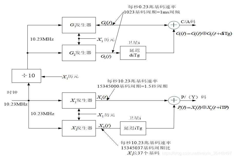 =10.23MHz,是卫星中的原子钟所提供的基准频率。卫星利用频率合成器在基准频率的基础上产生这两个频率。