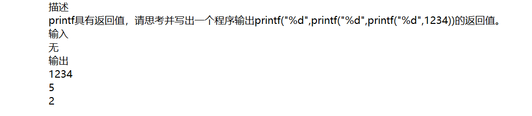 这说明了printf返回值是输出字符,空格,标点符号 和数字等(同理,下去一试即可)。