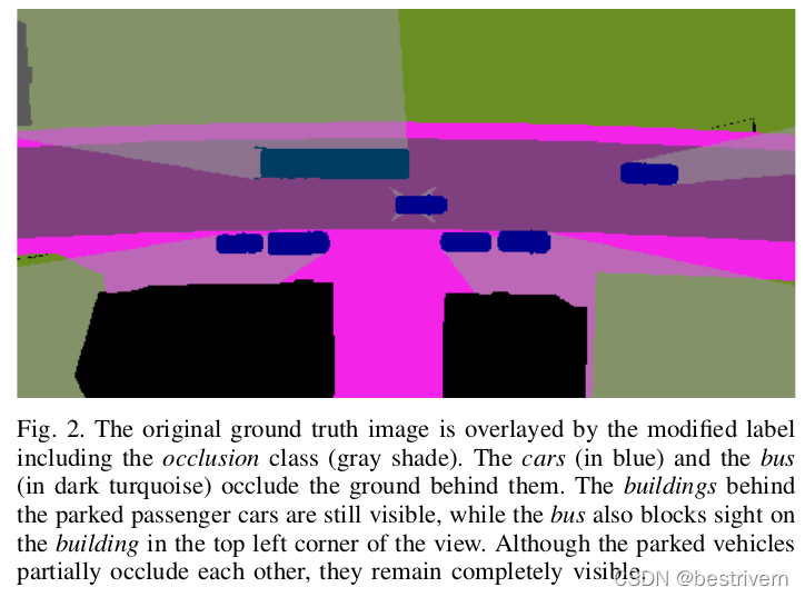 引入额外的一类表示遮挡,在上图里面表示灰色,从车上的几个相机中发出射线,一直到相机视野的边界