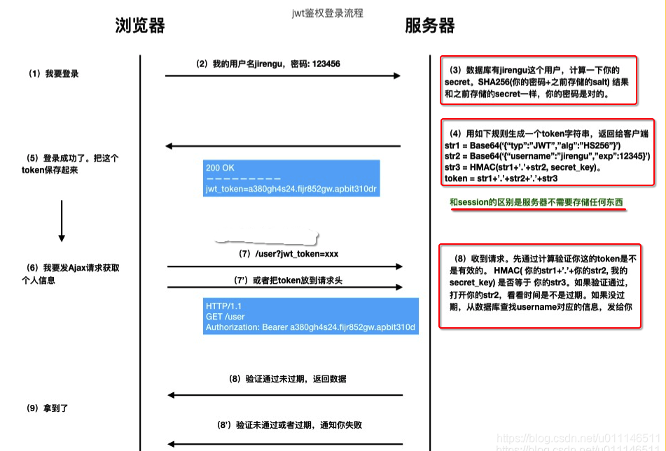 用户验证成功后会返回给浏览器客户端一个token字符串,服务端不做保存,下次再请求的时候,会携带token;