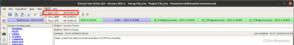 VTD的SCP(Simulation Control Protocol )用于进行非周期性的,即事件性的信息交互。通过发送SCP命令给到TaskControl,TaskControl根据命令的内容分发到进程,从而实现对VTD的操作,因此SCP是VTD自动化的基础。