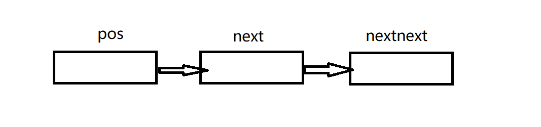 // next后只有一个节点时,nextnext为NULL,pos的next会指向NULL