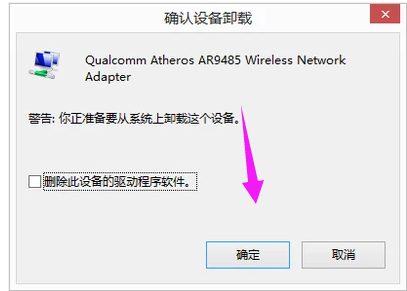 3、在弹出的确认窗口点“确定”,然后卸载这个网络适配器。