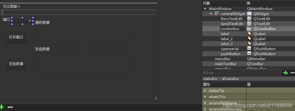 6、发送数据,添加按键槽,实现串口发送数据。