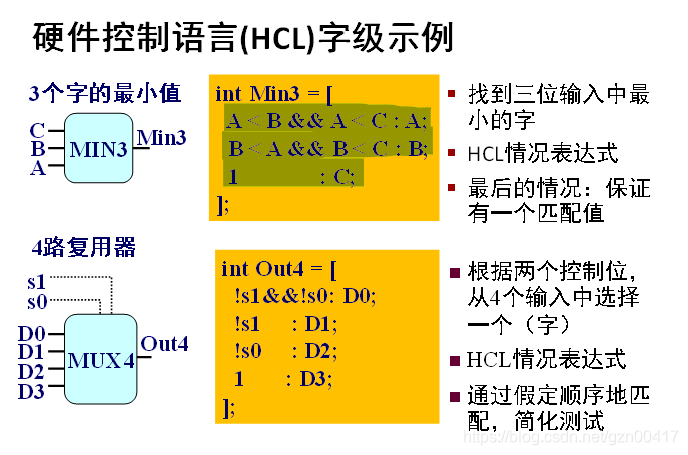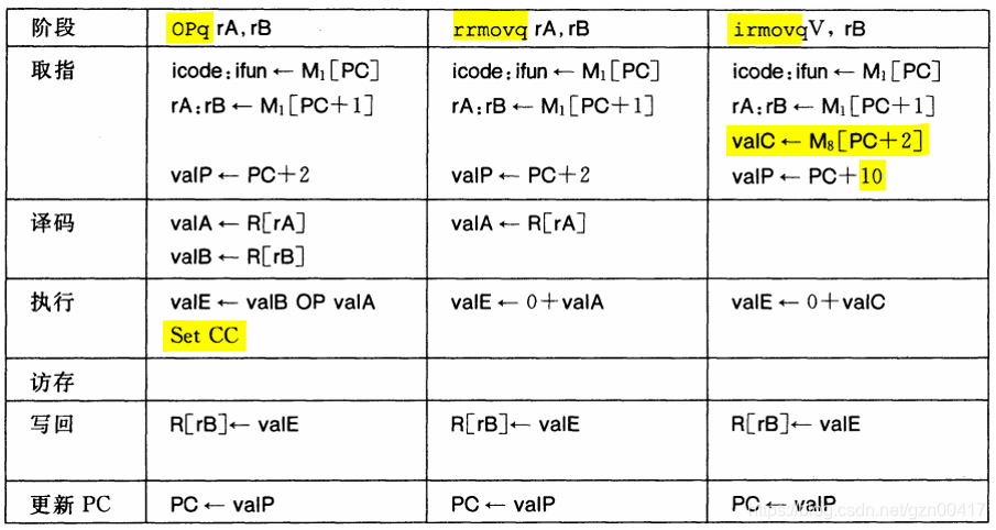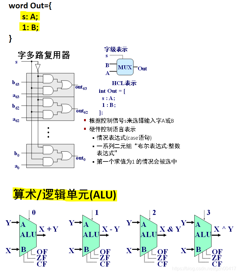 int aluA = [ icode in { IRRMOVQ, IOPQ } : valA; icode in { IIRMOVQ, IRMMOVQ, IMRMOVQ } : valC; icode in { ICALL, IPUSHQ } : -8; icode in { IRET, IPOPQ } : 8; # 其他指令不需要ALU ];