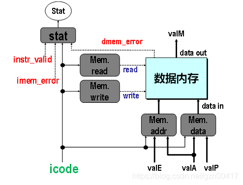 int mem_addr = [ icode in { IRMMOVQ, IPUSHQ, ICALL, IMRMOVQ } : valE; icode in { IPOPQ, IRET } : valA; # 其他指令不需要地址 ];