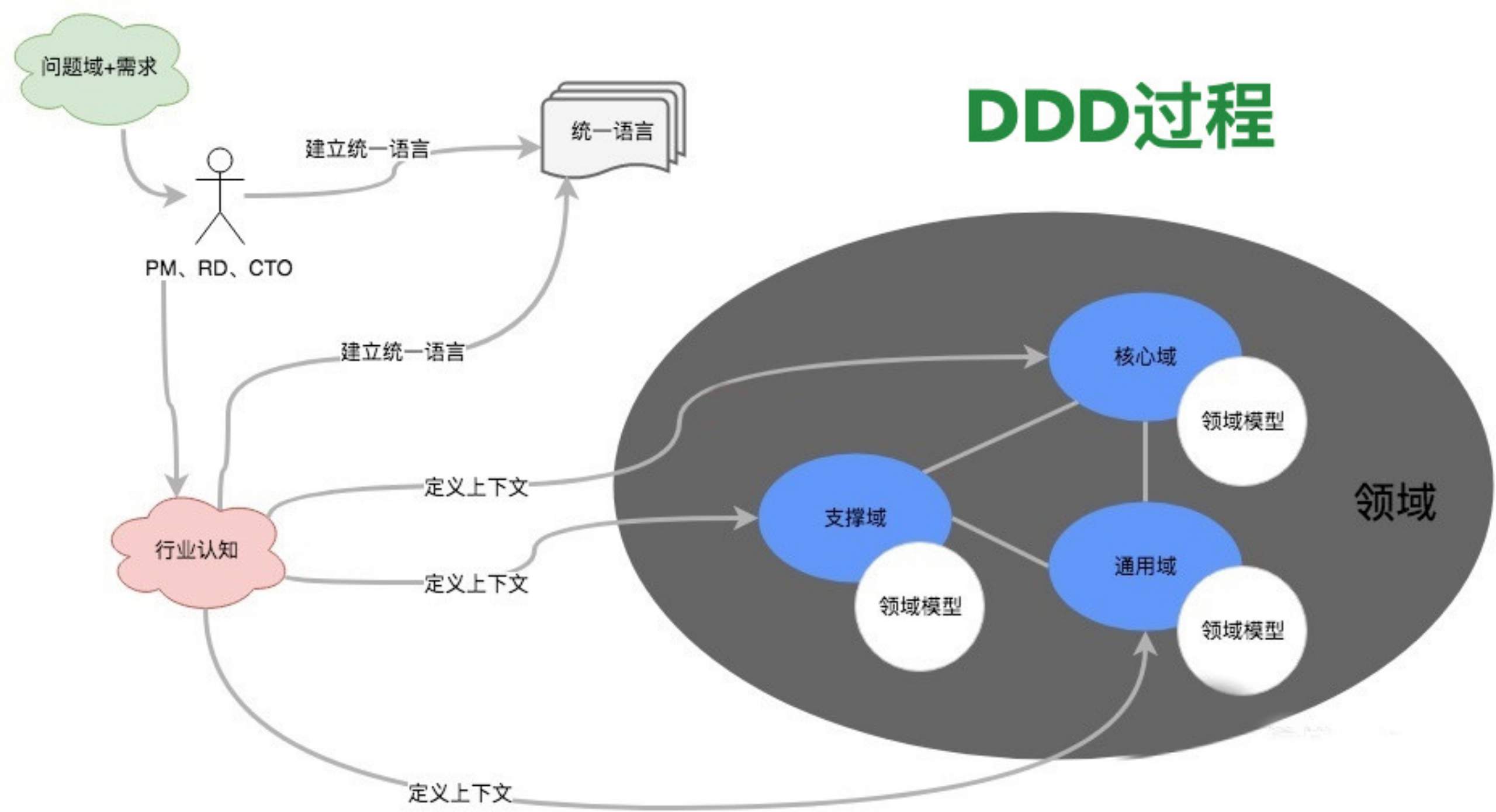 - PM、RD、CTO根据业务需求划分出初步的领域和限界上下文,以及上下文之间的关系,这里的CTO的角色就是我们常说的领域专家。