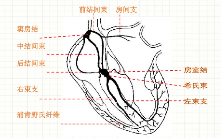 ,内有许多有自律节律性的细胞,从窦房结发出纤维束分布于心房的肌肉支配其收缩。其实这里的房室结其实是一个中转站,房室结再往下延续就是