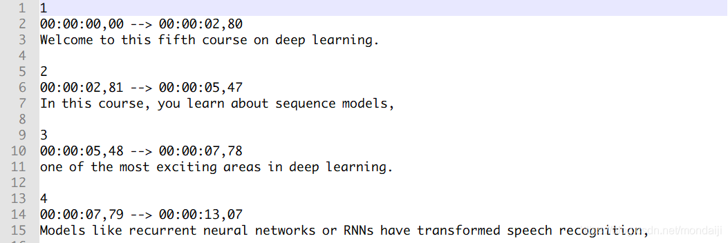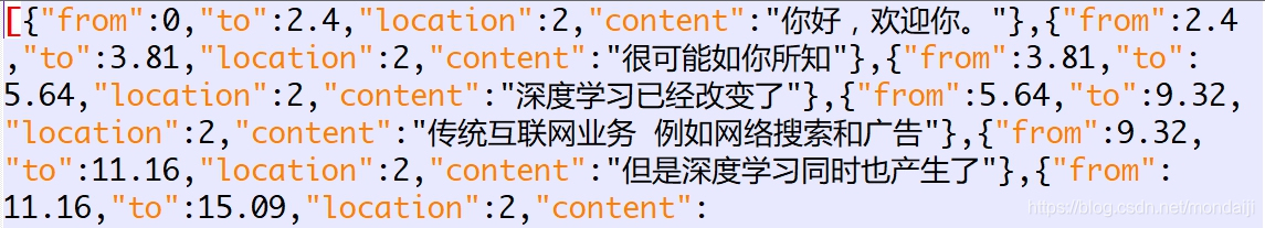 所以我们要做的工作主要就是把json文件的时间格式转换为srt文件的时间格式,另外再把字幕和序号添加上就可以了。