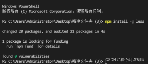 再次输入lessc -v