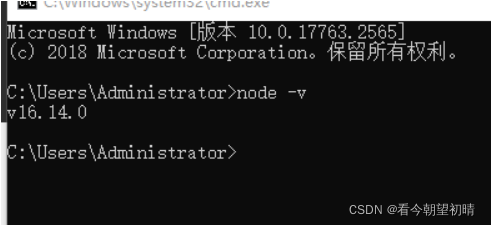 按住win+r输入cmd运行,在命令框中输入node-v。出现如下图所示的版本号提示则说明安装好了。