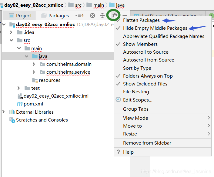 取消 Flatten Packages和 Hide Empty Middle Package即可。