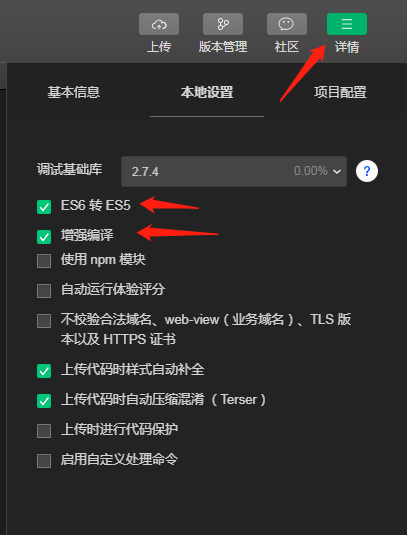 新版本的小程序支持async / await。勾选下面选项后重新编译程序即可