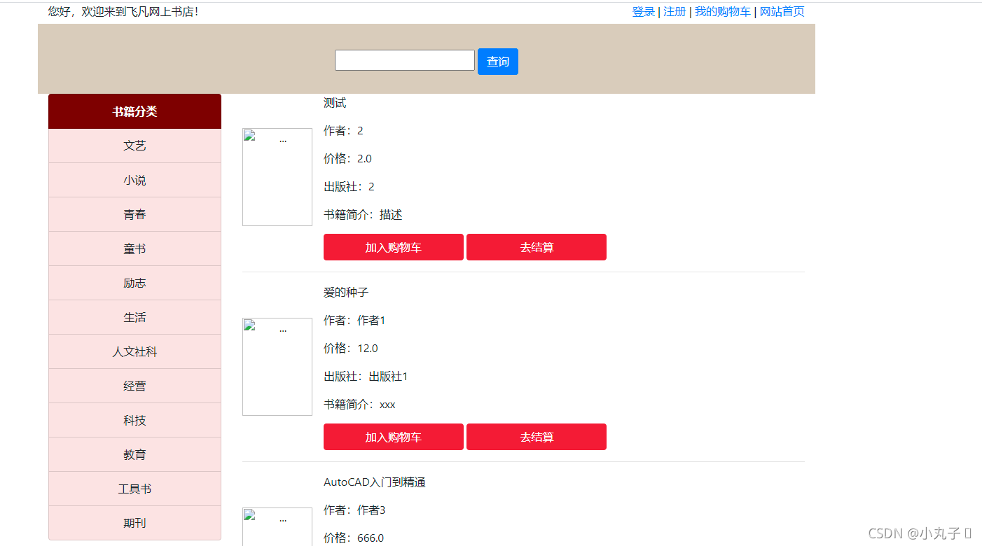 4、点击左侧类别,右侧跳转到findBook.jsp