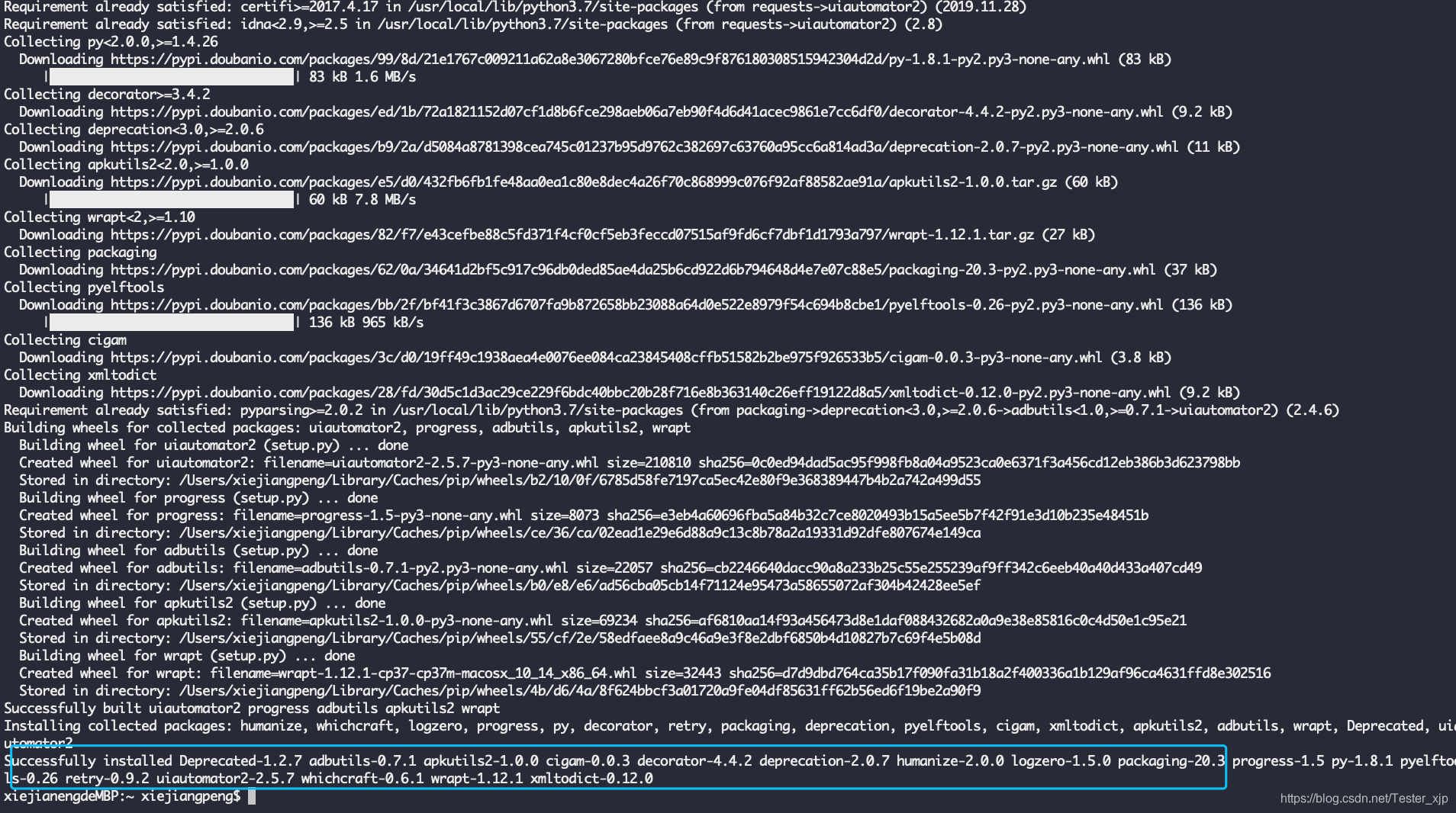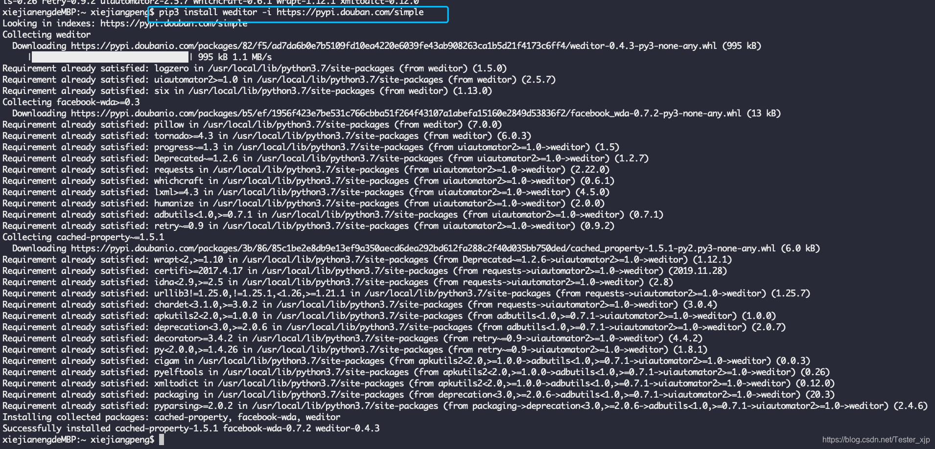 1.终端输入:pip3 install  uiautomator2  -i https://pypi.douban.com/simple
