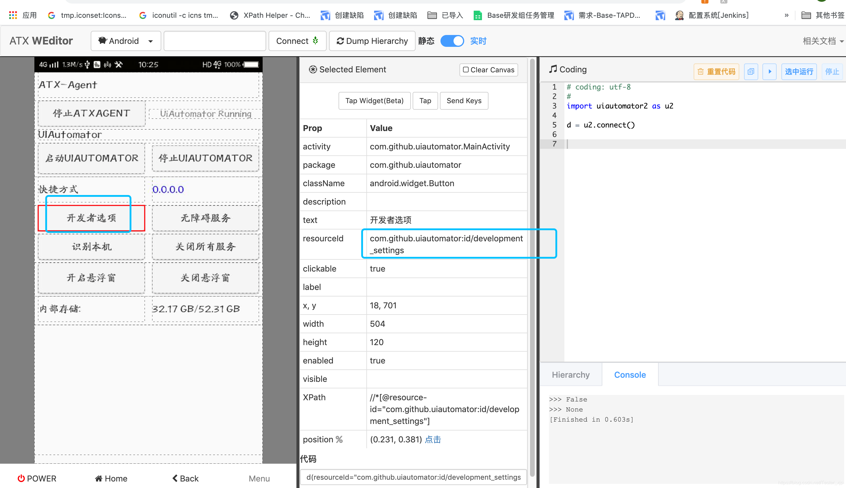 当你终端输入之后,会自动打开您的浏览器,你就可以看到如下界面(必须USB连接手机,并且打开实时按钮),这个时候你就可以定位你的APP元素了