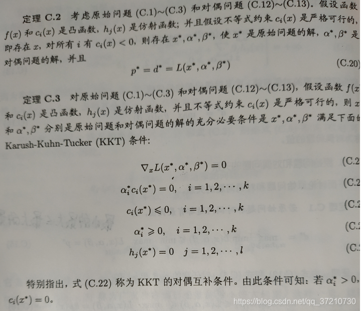 原始问题即式2.1~式2.3,在这里,我们继续使用前面构造的拉个朗日函数,即式2.4,对于