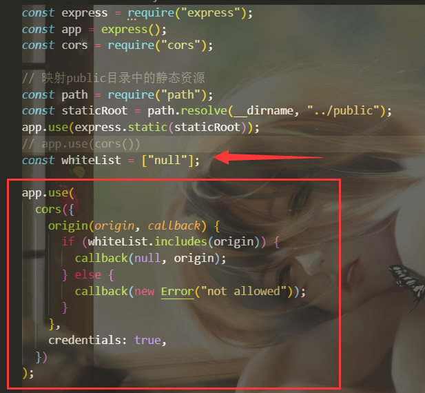 配置了一个白名单 如果请求源 能和白名单匹配 这允许跨域