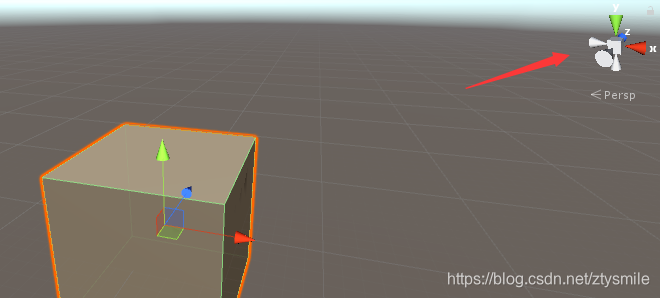 图中方块为刚创建的一个Cube,如图,在刚开始的时候Cube的坐标系是和右上角的坐标系一样的,都属于全局坐标系(也叫世界坐标系),