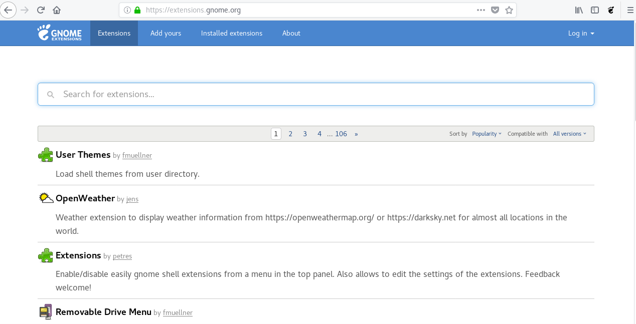 实验背景:可以使用GNOME Shell Extensions通过浏览器来安装一些桌面插件,美化桌面