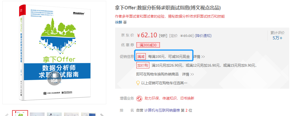 目前京东正在举行100-50的活动,大家可以用原价5折的价格购买:
