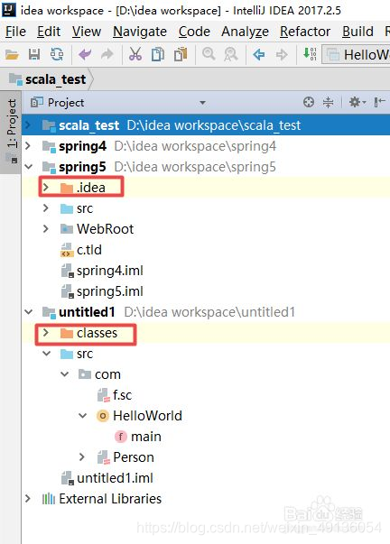 1. 这是IDEA的模块文件树,上面有个.idea文件属于idea自动生成的项目配置文件,classes是编译后的文件,这都不是我们的代码。