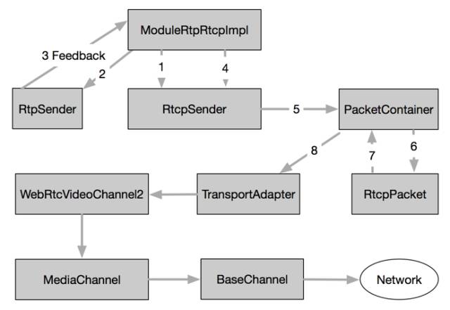 在WebRTC内部,RTCP报文的发送采取周期性发送和及时发送相结合的策略:ModuleProcess线程周期性发送RTCP报文;而RtpSender则在每次发送RTP报文之前都判断是否需要发送RTCP报文;另外在接收端码率估计模块构造出REMB报文后,通过设置超时让ModuleProcess模块立即发送RTCP报文。