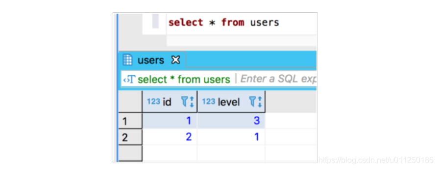 我们看到已存在行(id=1) 的 level 更新为新的值 3, 并且插入新行。