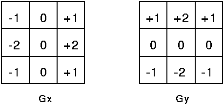 该算子包含两组3×3的矩阵,分别为横向及纵向,将之与图像作平面卷积,即可分别得出横向及纵向的亮度差分近似值。如果以A代表原始图像,Gx及Gy分别代表经横向及纵向边缘检测的图像灰度值,其公式如下: