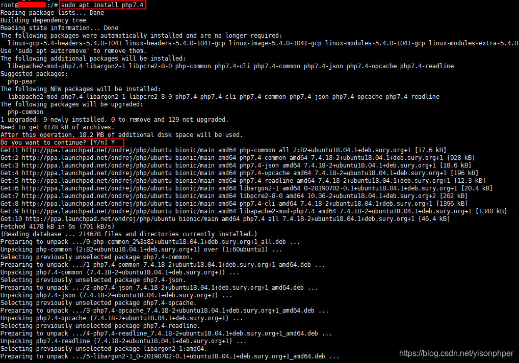 但提示:Do you want to continue? [Y/n] 时,输入Y就可以了。