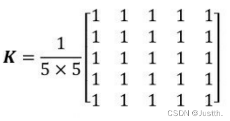 以5×5的邻域为例,在进行方框滤波时,如果计算的是邻域像素值的均值,则使用的卷积核为: