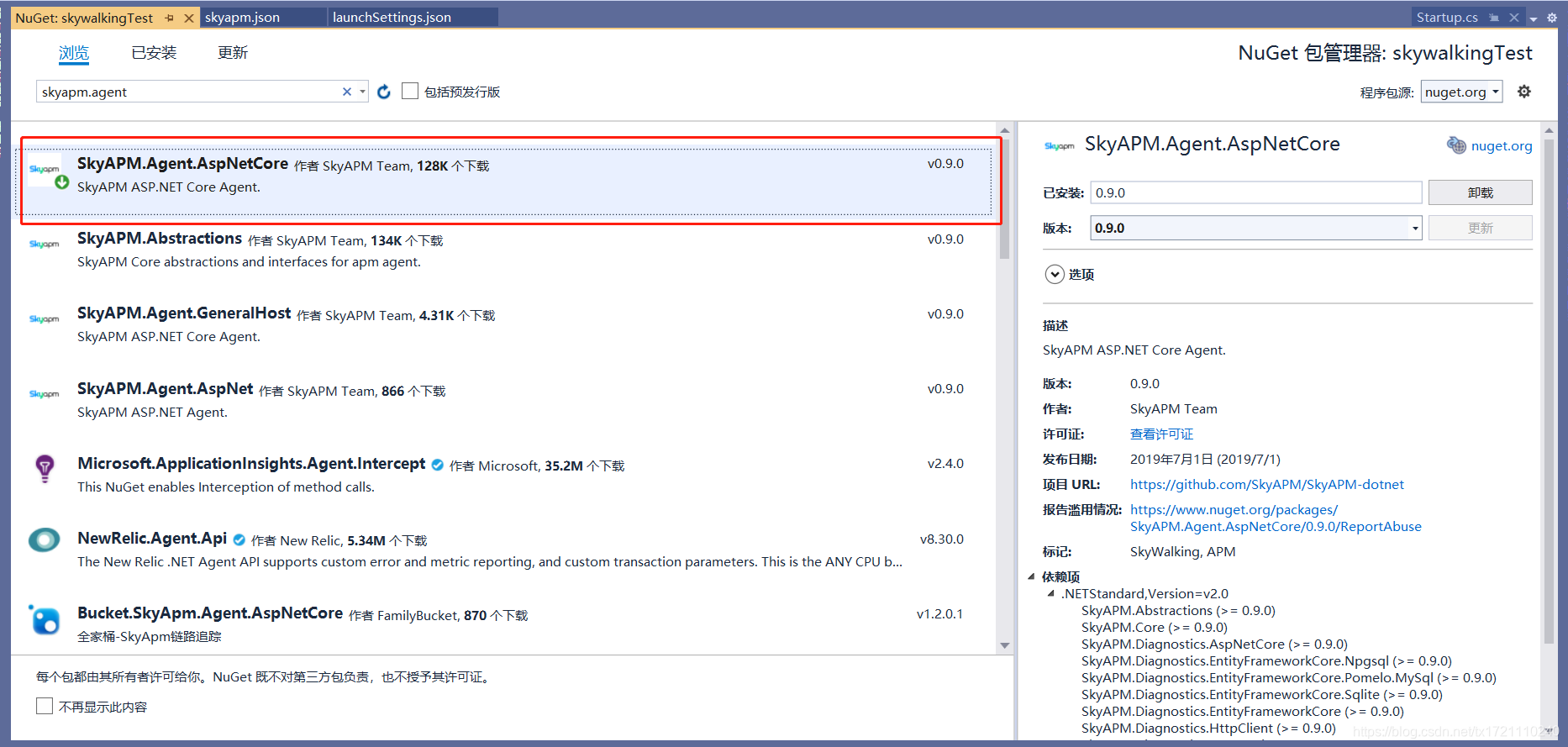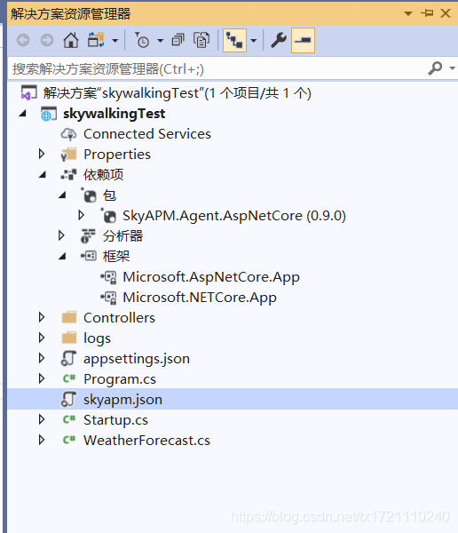 首先创建一个webapi,并添加SkyAPM.Agent.AspNetCore引用