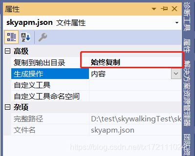为项目添加skyapm.json配置文件,ServiceName会显示在Skywalking的服务名称上