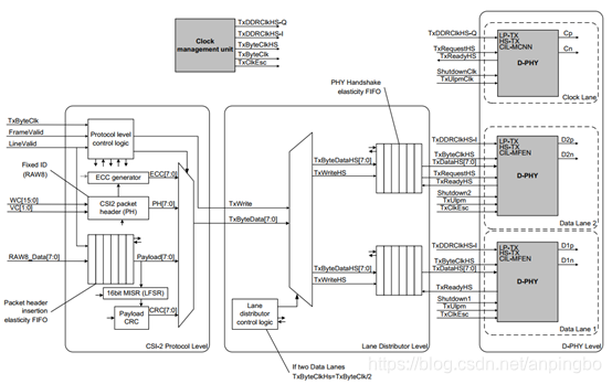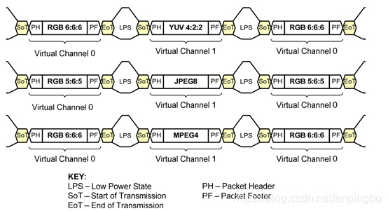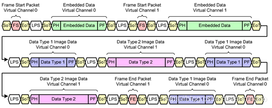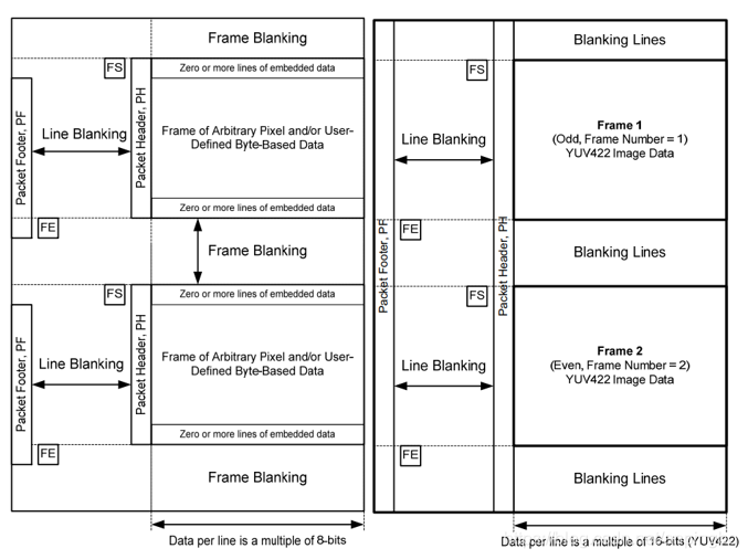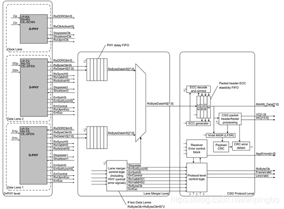 - 协议层:又分为三层(像素打包解包格式,低水平协议,链路管理),主要关于图像数据打包方式,以及处理多通路图像数据的方式等。